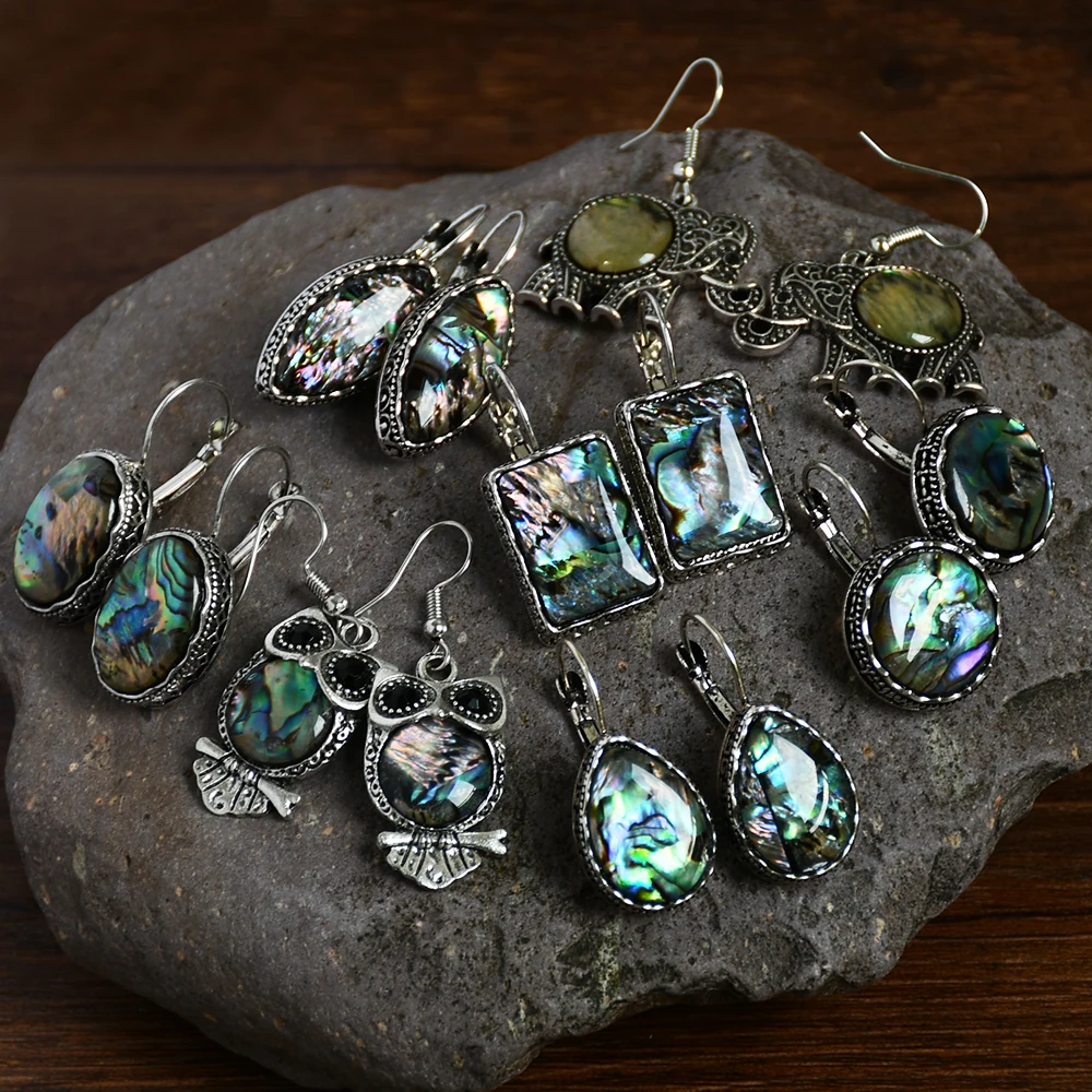 Boucles d'oreilles coquillage couleur naturelle pour femmes, Vintage, motif hibou plaqu argent, goutte d'eau, crochet d'oreille, bijoux de fte la mode