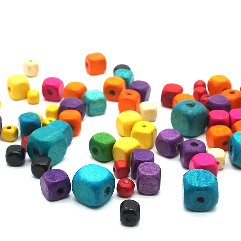 100pcs/lot Deep Brown Color Square Wood Beads 8x8mm 10x10mm Cube Natural Wood Rondelle Beads for DIY Bracelets Jewelry Materials