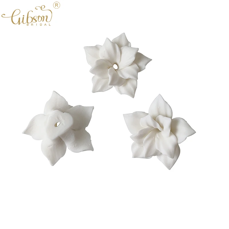 Flores de cermica de porcelana de fondo plano de Color blanco, joyera hecha a mano, pendientes DIY, accesorios para hacer bodas, 50 piezas