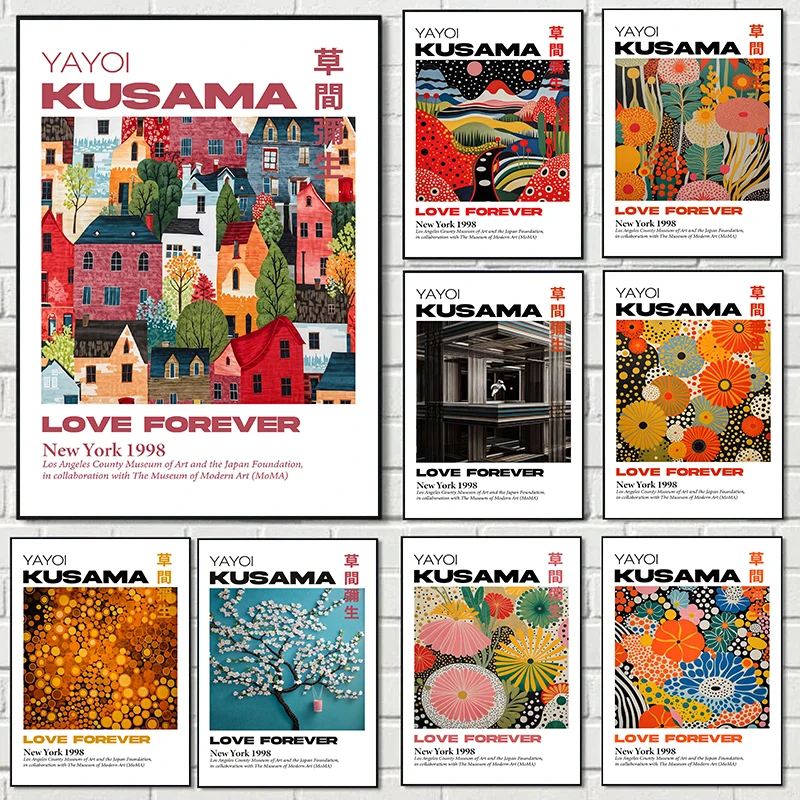 Yayoi Kusama Canvas Painting Japanese Abstract Artwork Poster and Print Wall Art Picture for Home Decoration Cuadros