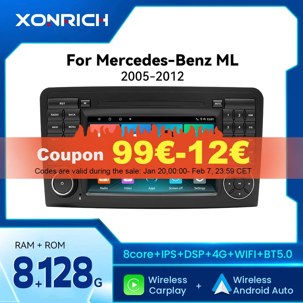 Wireless Carplay Android 14 Car Radio Multimedia For BENZ ML 320/350/W164(2005-2012)GL DSP Navigation RDS Head Unit 128G 4G Wif