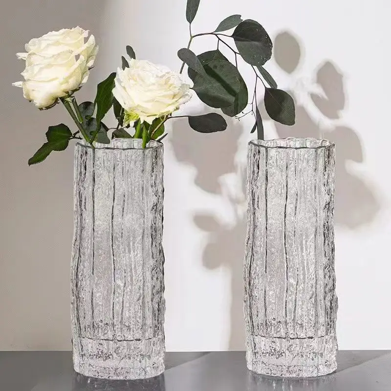 Vase Glacier Vase Glass Transparent Flower Arrangement Rose Flower Living Room Dining Table Decoration Bottle