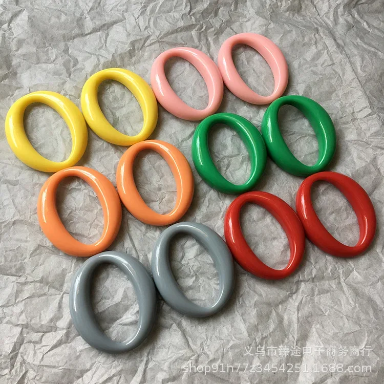 5pcs Japanese color geometric oval frame hollow ring resin accessories diy hand earrings jewelry material wholesale