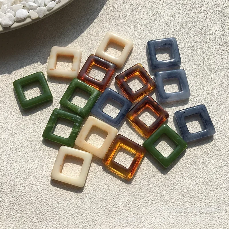 5pcs Korea vintage geometric hollow ring small square border resin frame accessories DIY earrings earrings jewelry material