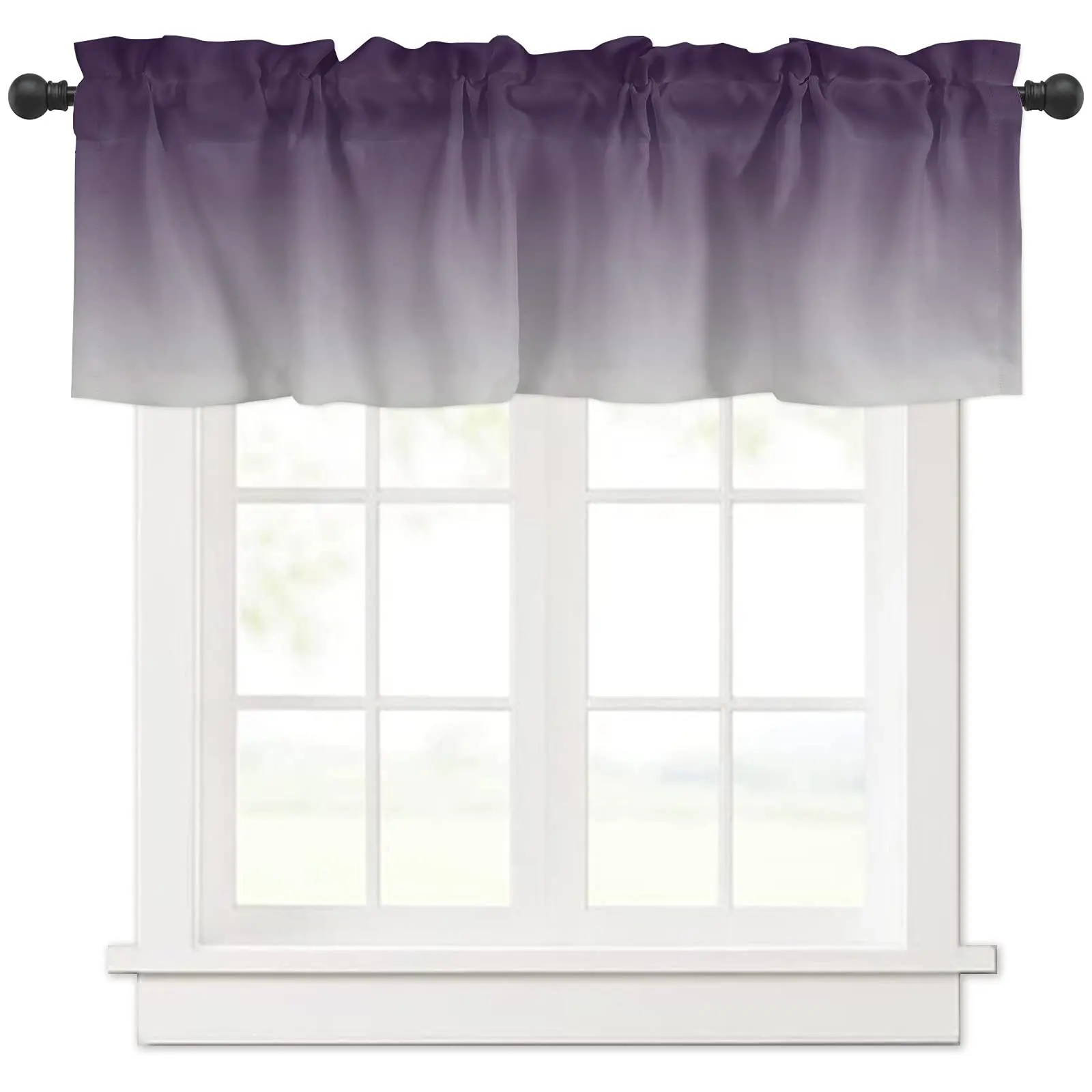 Valance Curtains for Kitchen Ombre Purple Short Curtain Rod Pocket Bedroom Living Room,Single Panel Decor Valances for Windows