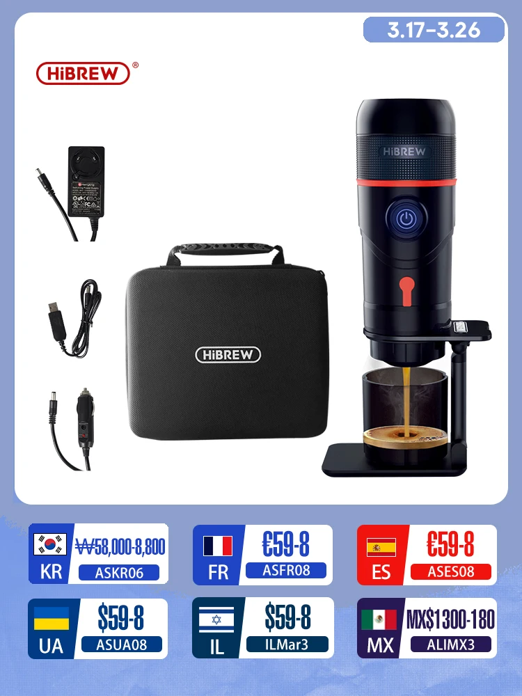 HiBREW Portable Coffee Machine for Car & Home,DC12V Expresso Coffee Maker Fit Nexpresso Dolce Pod Capsule Coffee Powder H4