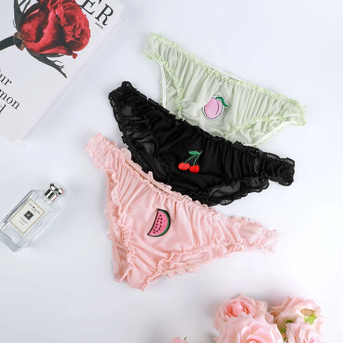 1PCS Women's Lace Sexy Panties Ladies Girls Fruit Embroidery Seamless Panties Comfortable Breathable Women Underwear Panties