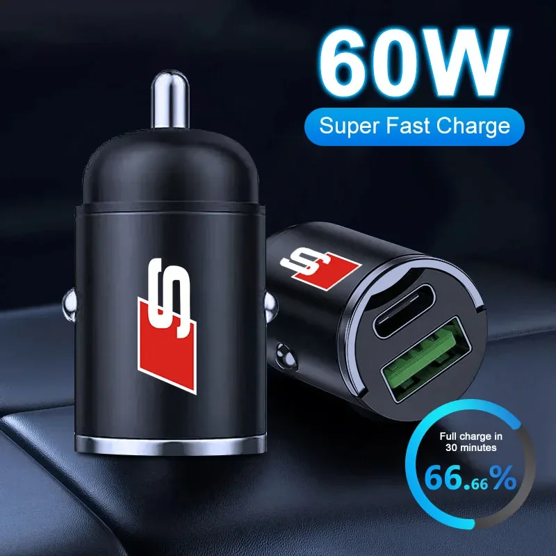 new Car Fast Charger USB Type-C Charging Adapter Accessories For Audi Sline A1 A2 A3 A4 A5 A6 A7 A8 Q1 Q2 Q3 Q4 Q5 Q6 Q7 Q8 RS3